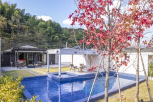 Hot spring baths in guest rooms and private fire pitsBlue Dome Kyoto Amanohashidate