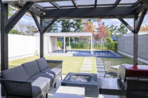 Hot spring baths in guest rooms and private fire pitsBlue Dome Kyoto Amanohashidate