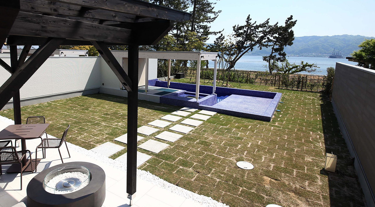 Hot spring baths in guest rooms and private fire pitsBlue Dome Kyoto Amanohashidate